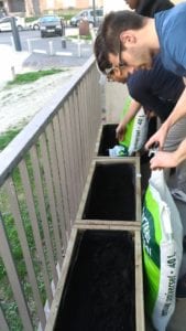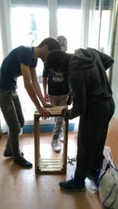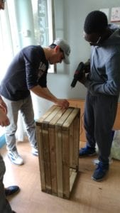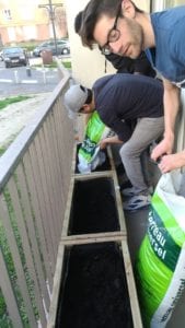 Mercredi 27 février, munis de perceuses/visseuses et de bonne volonté, les bacs ont été montés et installés sur les balcons de l’association Espace Les Monis.
